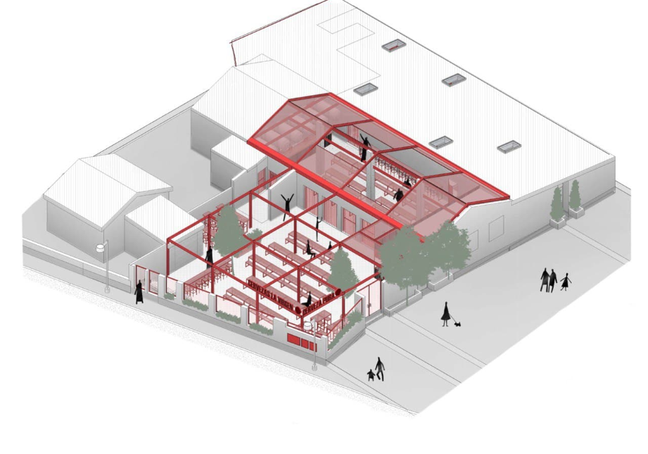 La rehabilitación de la antigua pollería de Majadahonda para convertirla en un nuevo local de cervezas la virgen adaptándolo a las medidas de La Covid-19, ha sido uno de nuestros proyectos más difíciles y bonitos al mismo tiempo, constructivamente hemos potenciado su estructura metálica de la cubierta y los pórticos del patio generando así una continuidad para que el restaurante funcione todo el año abierto al exterior