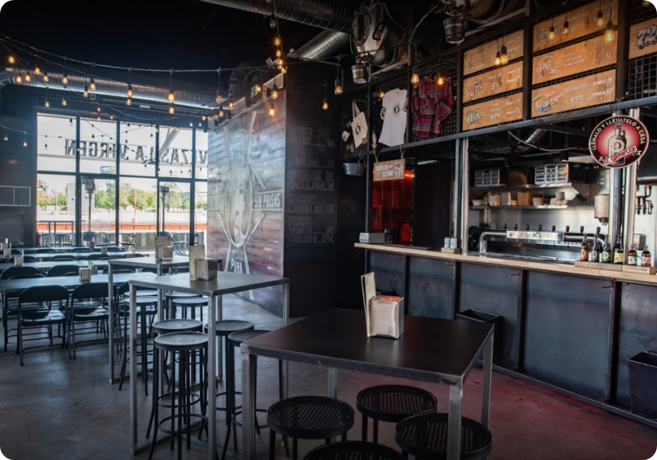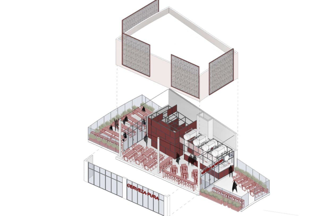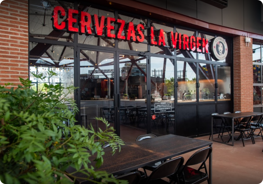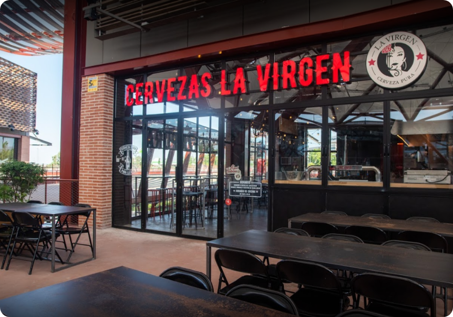 Cervecería La Virgen 1 en el centro comercial X Madrid. Con un diseño que pone en valor la arquitectura a través del ocio, que hace que se generen diferentes ambientes en un mismo espacio.