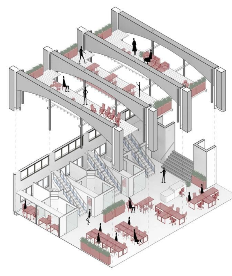 E-Global es un coworking que expresa la idea de trabajo para el futuro. Fomentando la creatividad, el trabajo en equipo y la manera de relacionarnos con trabajadores de otros sectores. Una nueva filosofía que trasciende desde la arquitectura.