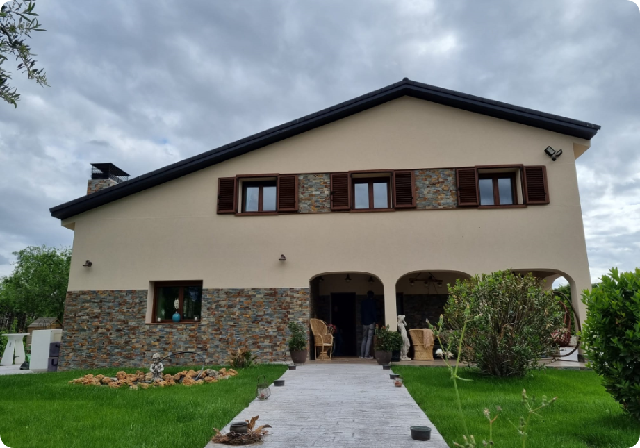 En esta vivienda en Berrocales rehabilitamos la cubierta y la envolvente en la cual incorporamos aislamiento y cambiamos las ventanas por unas de rotura de puente térmico. También tuvimos en cuenta las instalaciones al cambiar del sistema de calefacción por aerotermia y añadir paneles fotovoltaicos. Ya que cualquier instalación va implícita en el consumo energético del inmueble.