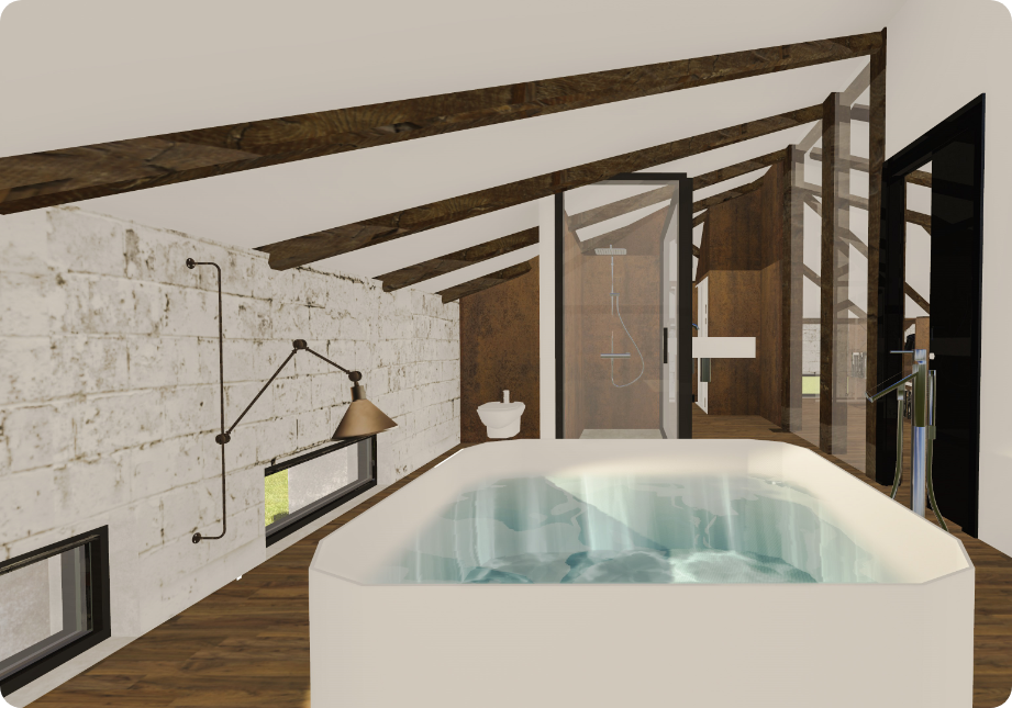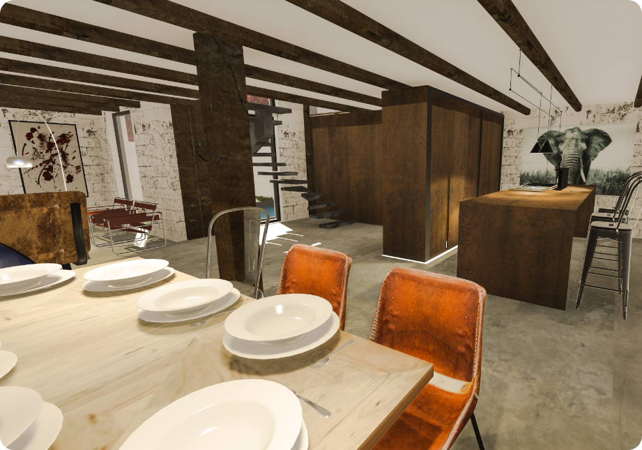 El diseño se inspira en la estética industrial de los lofts neoyorquinos aporta austeridad y minimalismo que son las bases de esta tendencia. Elementos estructurales con vigas y pilares de madera, paredes originales de ladrillo recuperado, instalaciones vistas y suelos de hormigón, son las máximas de este diseño, añadiéndole calidez con la madera, pieles y tejidos generando un entorno confortable y acogedor.