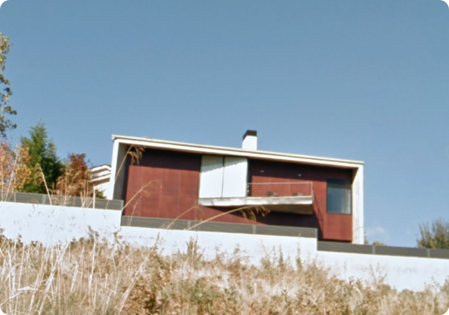 Vivienda en la sierra de Madrid, un proyecto con un aire moderno realizado con estructura metálica y con fachada de hormigón visto, dándole a la casa un carácter industrial y destacando así con las construcciones de su entorno.