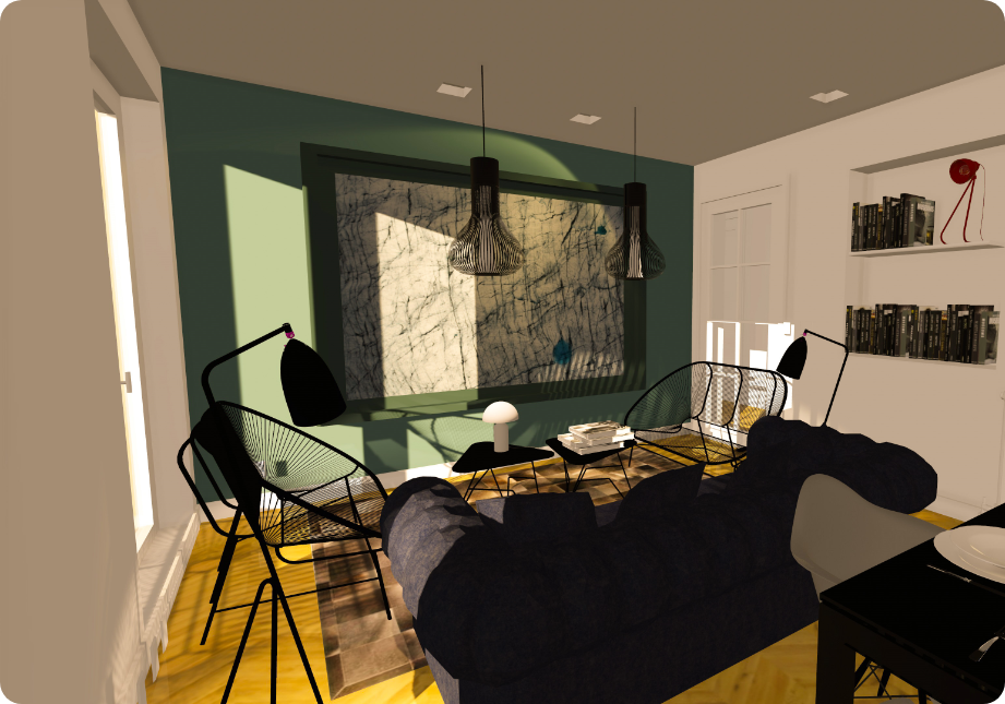Originalmente, el espacio fue un taller de costura y patronaje. El objetivo fue redistribuir las estancias a partir de un pasillo de más de 15 metros del que hicimos nuestro principal nervio de unión entre los vértices de las zonas que componen el inmueble, al abrir la circulación de la vivienda a partir de esa arteria a zonas más privadas, delimitando así la zona de día. Hay que destacar cómo el acabado lacado favorece una sensación de amplitud y luminosidad que se reflejan y proyectan por toda la estancia.